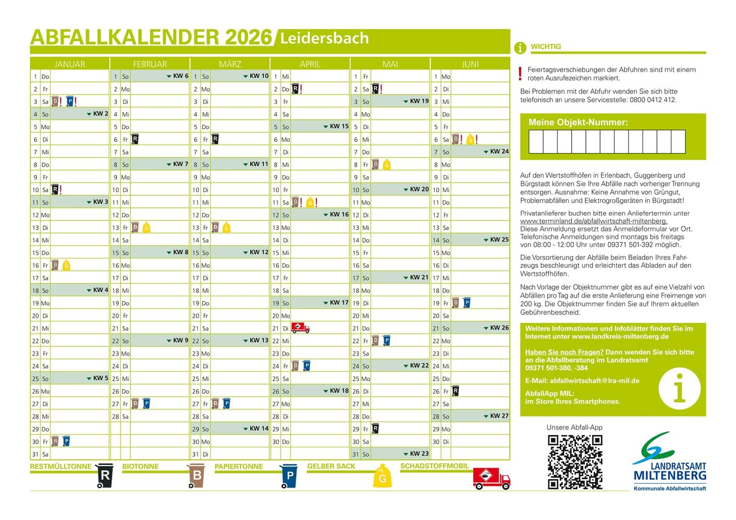 Abfuhrplan 2026 - 1. Halbjahr, Leidersbach mit seinen Ortsteilen Ebersbach, Leidersbach, Roßbach, Volkersbrunn, einschl. Hohe Warte.